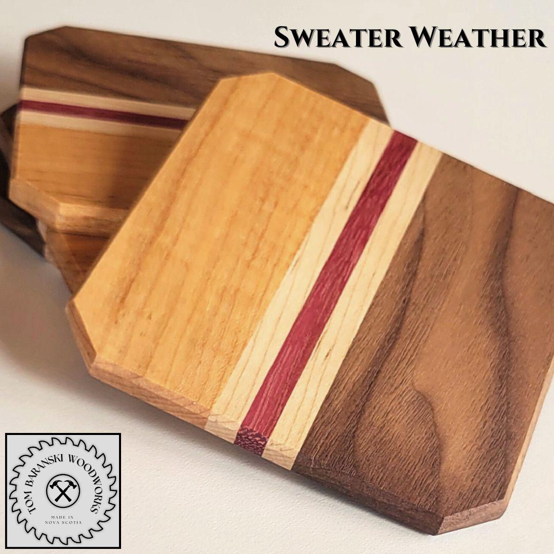Handcrafted in Elmsdale, Nova Scotia, we currently offer five design choices. Four of these designs are made to match our signature cutting boards, and we have one bonus design called Sweater Weather.